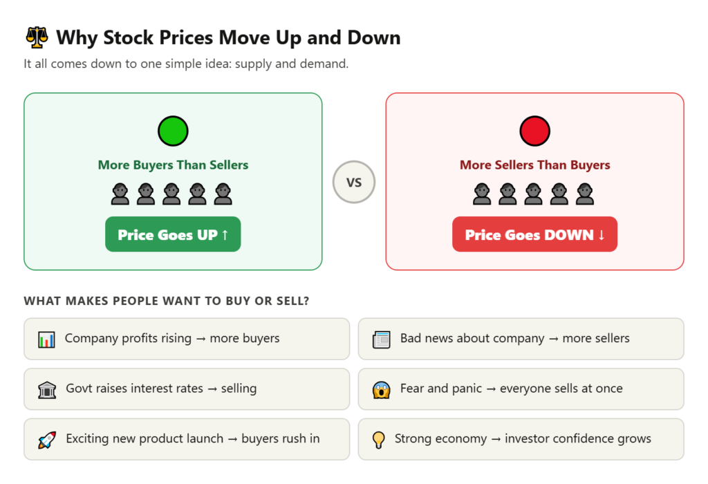 • If more people want to SELL a stock than buy it → price goes DOWN