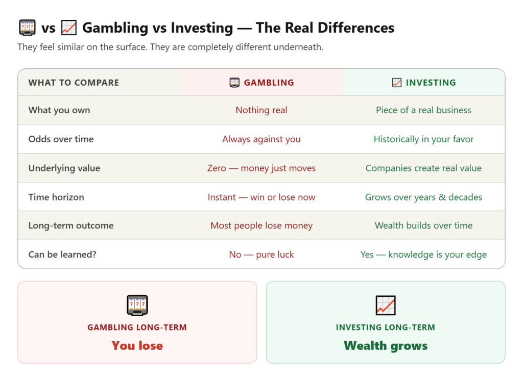 No. Investing in stocks is NOT gambling — when done with knowledge.
