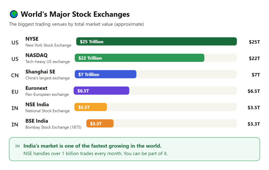 • BSE (Bombay Stock Exchange) — Asia’s oldest, established in 1875