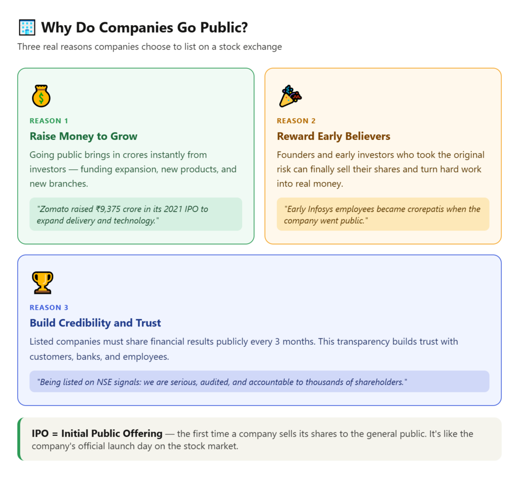 The founders and early investors who took the original risk deserve a reward. Going public lets them sell some of their shares and turn their paper wealth into real money. Early Infosys employees became crorepatis this way.
